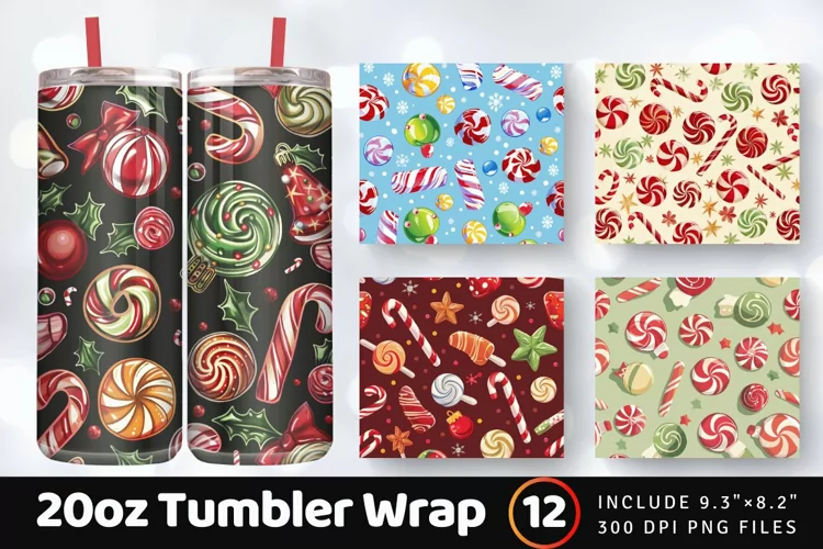 Candy Seamless Christmas Tumbler Wrap, 20oz Skinny Tumbler Wraps