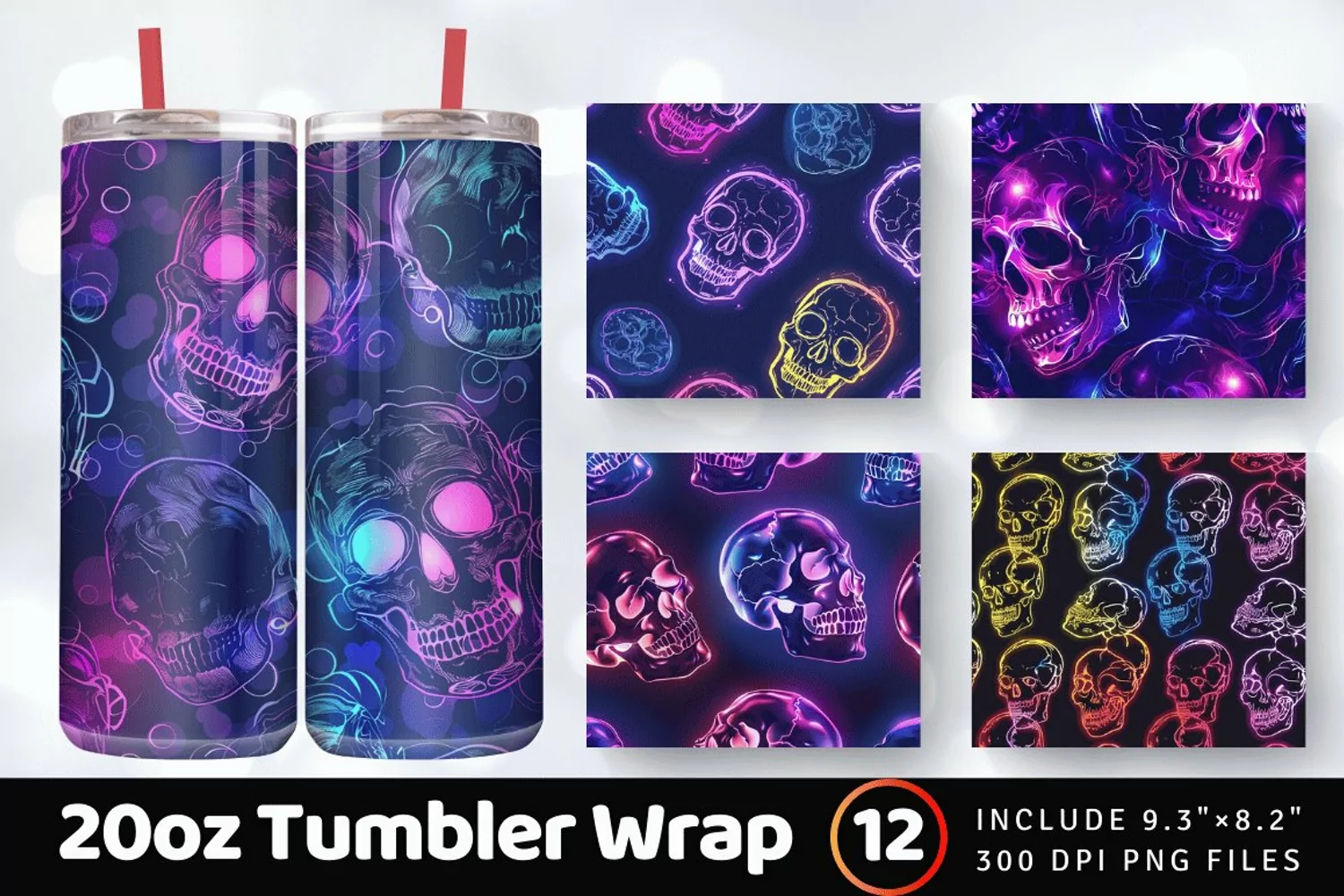 Neon Skulls Halloween Tumbler Wrap, 20oz Skinny Tumbler Wraps