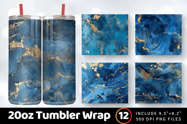 Blue Ink and Gold Foil Tumbler Wrap, 20oz Skinny Tumbler Wraps