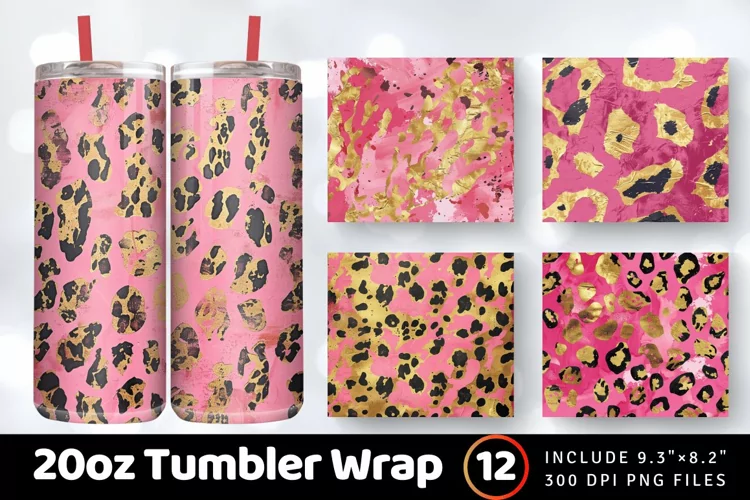 Pink and Gold Leopard Tumbler Wrap, 20oz Skinny Tumbler Wraps