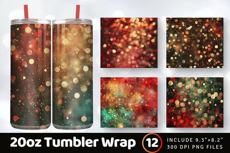 Christmas Bokeh and Glitter Tumbler Wrap, 20oz Skinny Tumbler Wraps