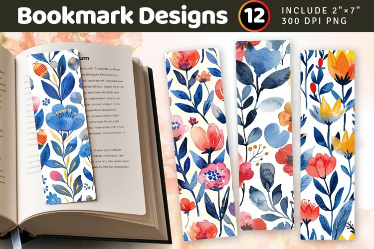 Watercolor Scandinavian Flowers PNG Bookmark Sublimation Designs