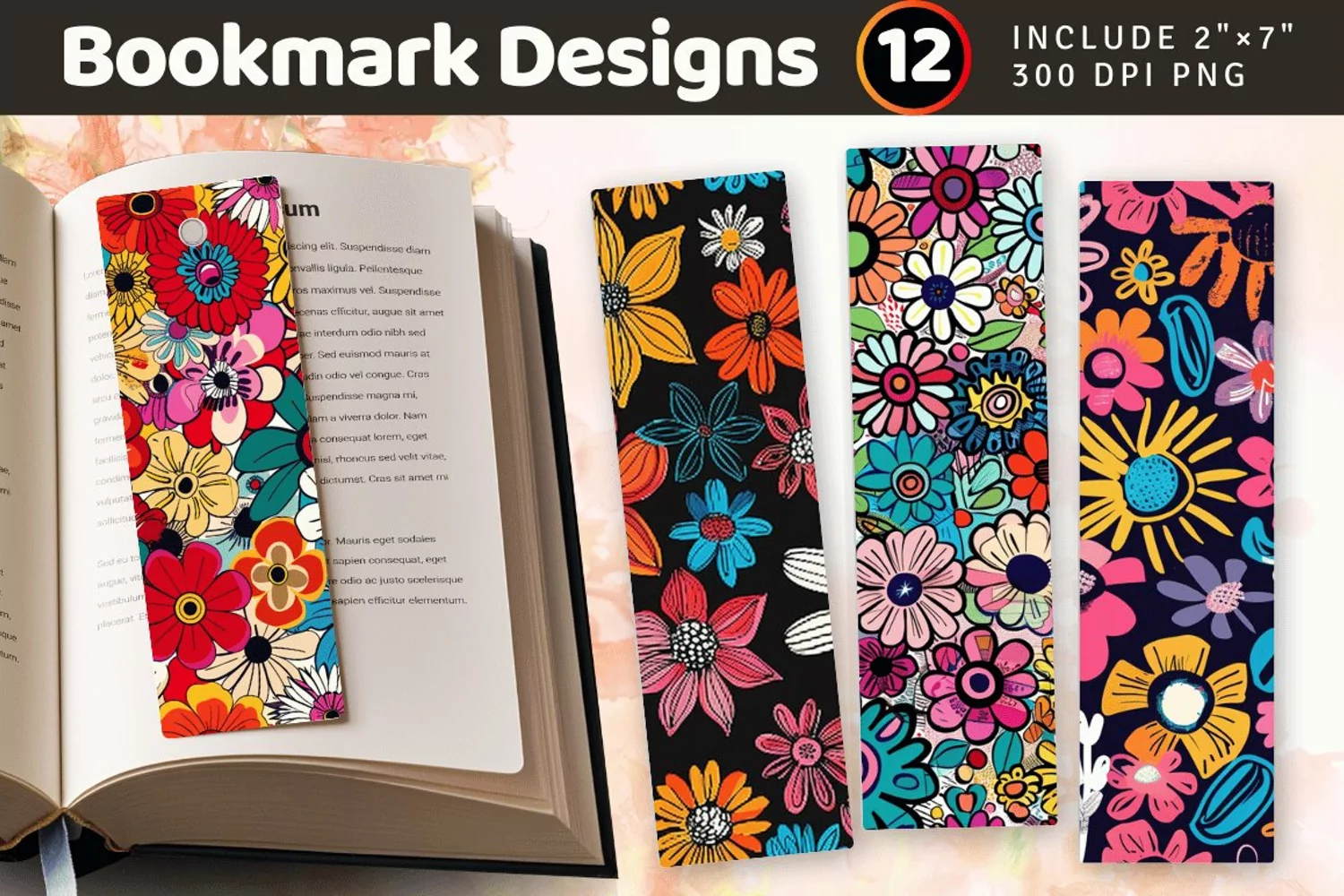 Whimsical Funky Flowers PNG Bookmark Sublimation Designs