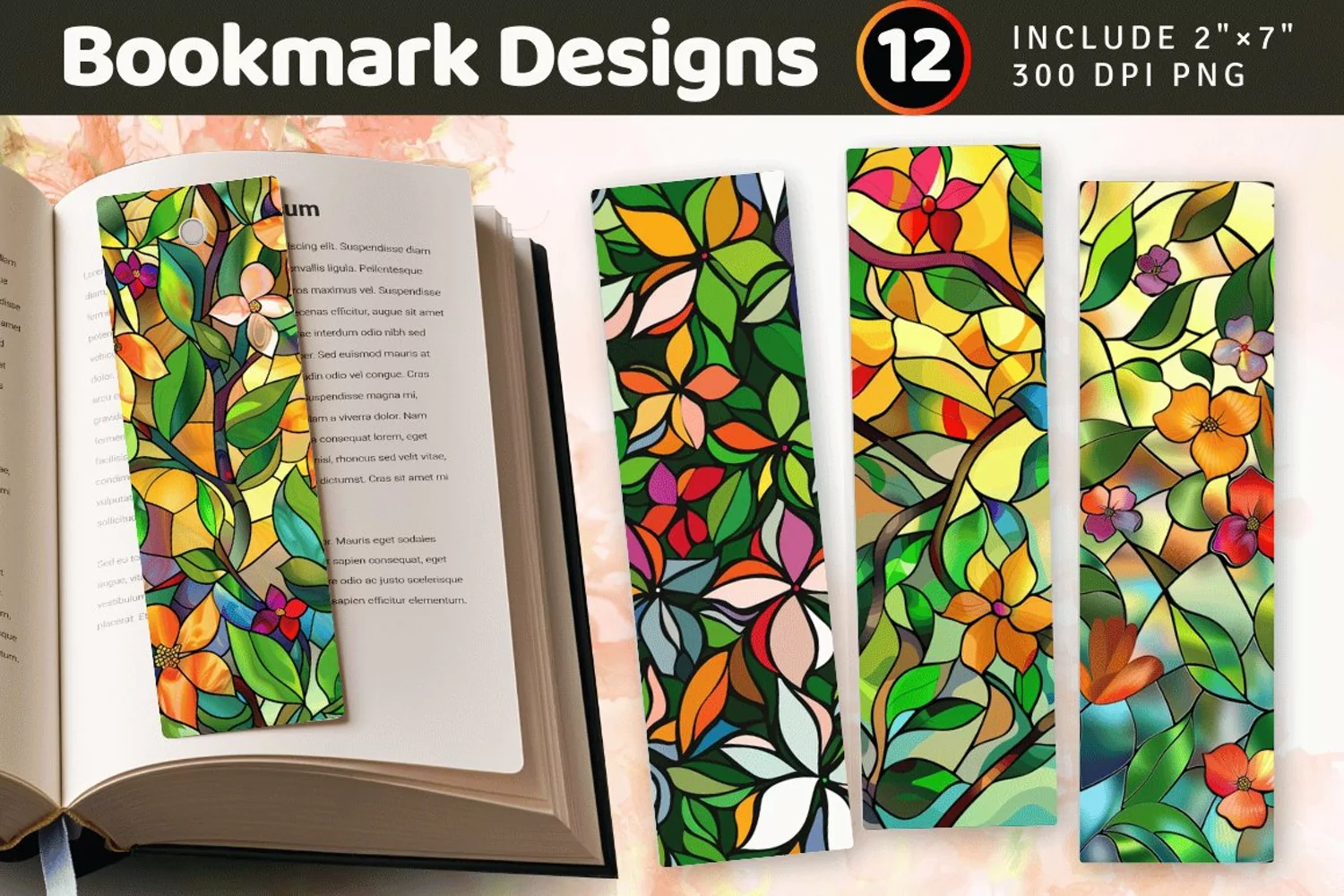 Spring Stained Glass Floral PNG Bookmark Sublimation Designs