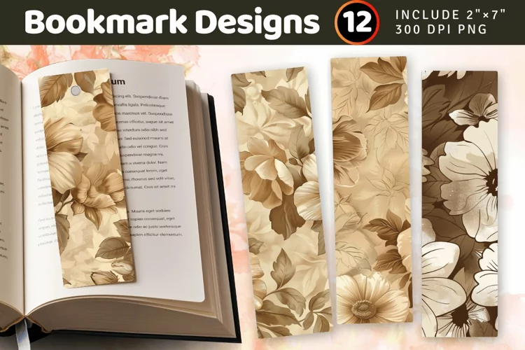 Sepia Flowers PNG Bookmark Sublimation Designs