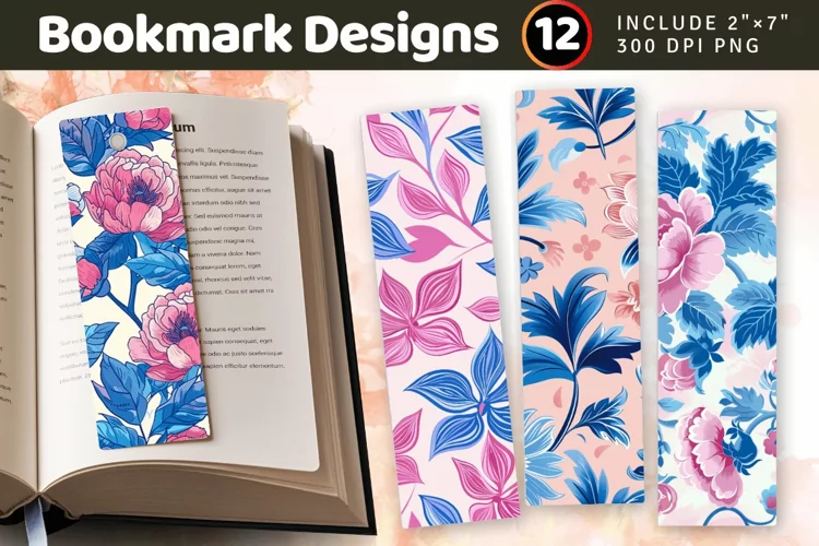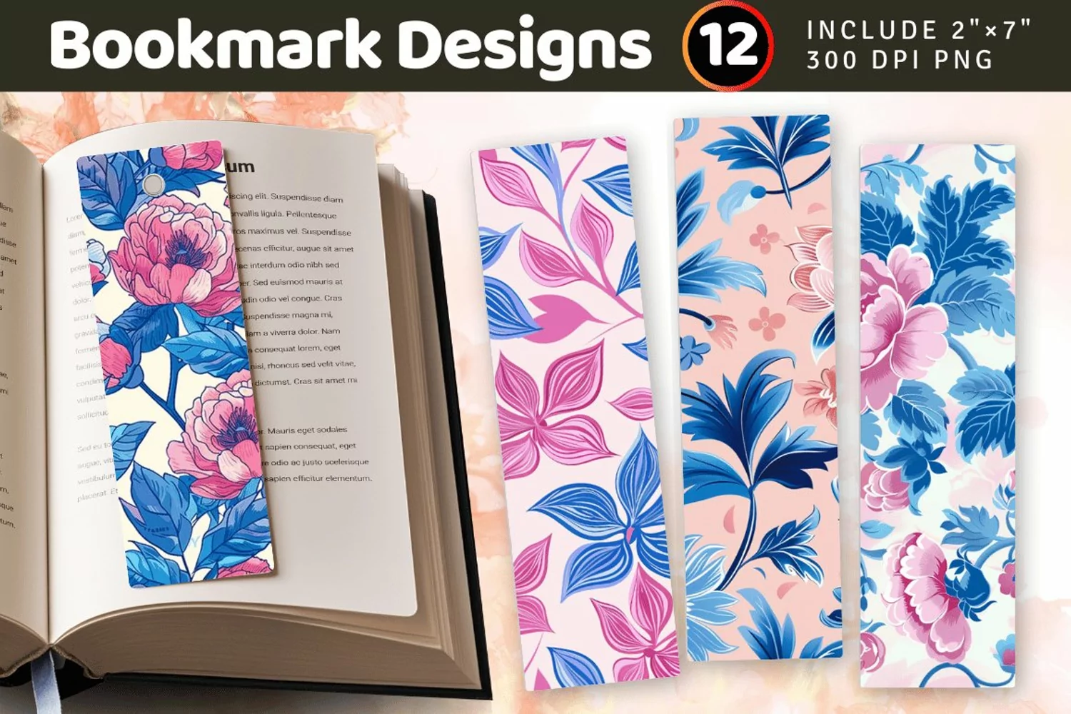 Pink and Blue Floral PNG Bookmark Sublimation Designs
