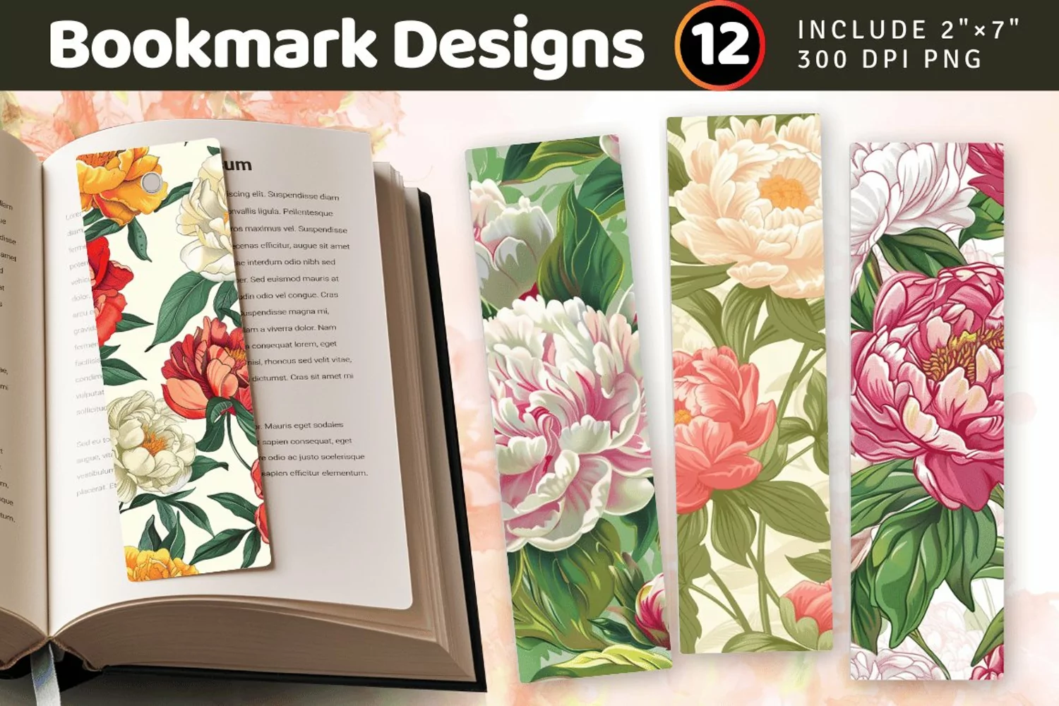 Peony Garden Bookmark PNG Bookmark Sublimation Designs