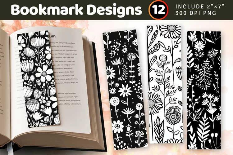 Black White Mini Garden PNG Bookmark Sublimation Designs