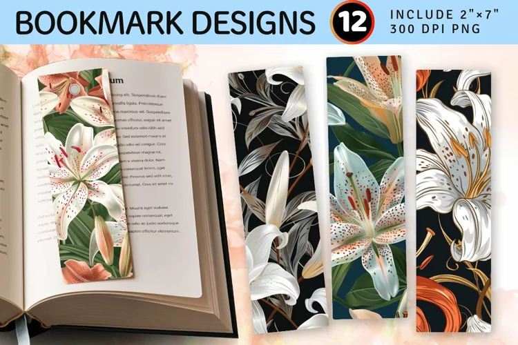 Regal Lily Flowers PNG Bookmark Sublimation Designs