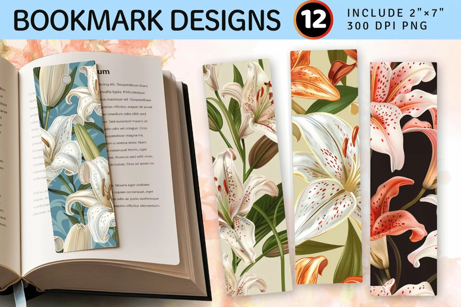 Regal Lily Flowers PNG Bookmark Sublimation Designs