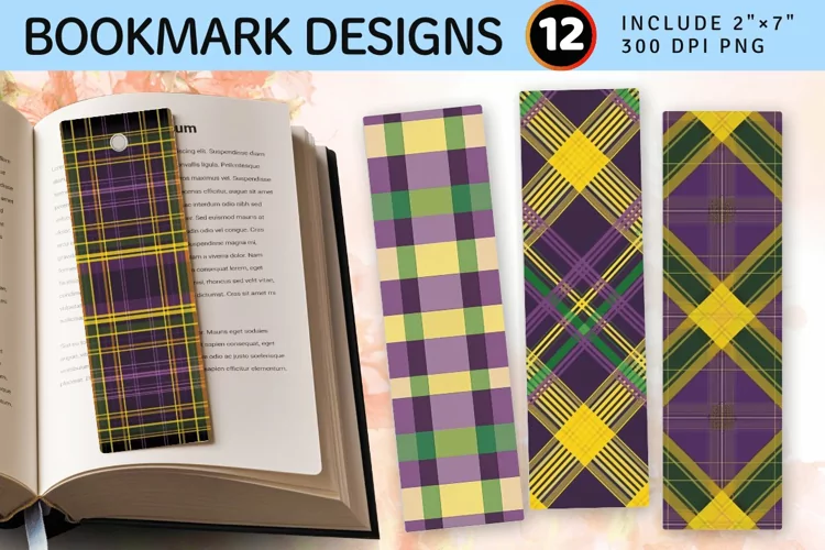 Purple Green & Yellow Plaid PNG Bookmark Sublimation Designs