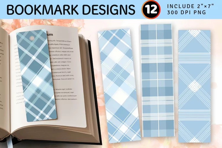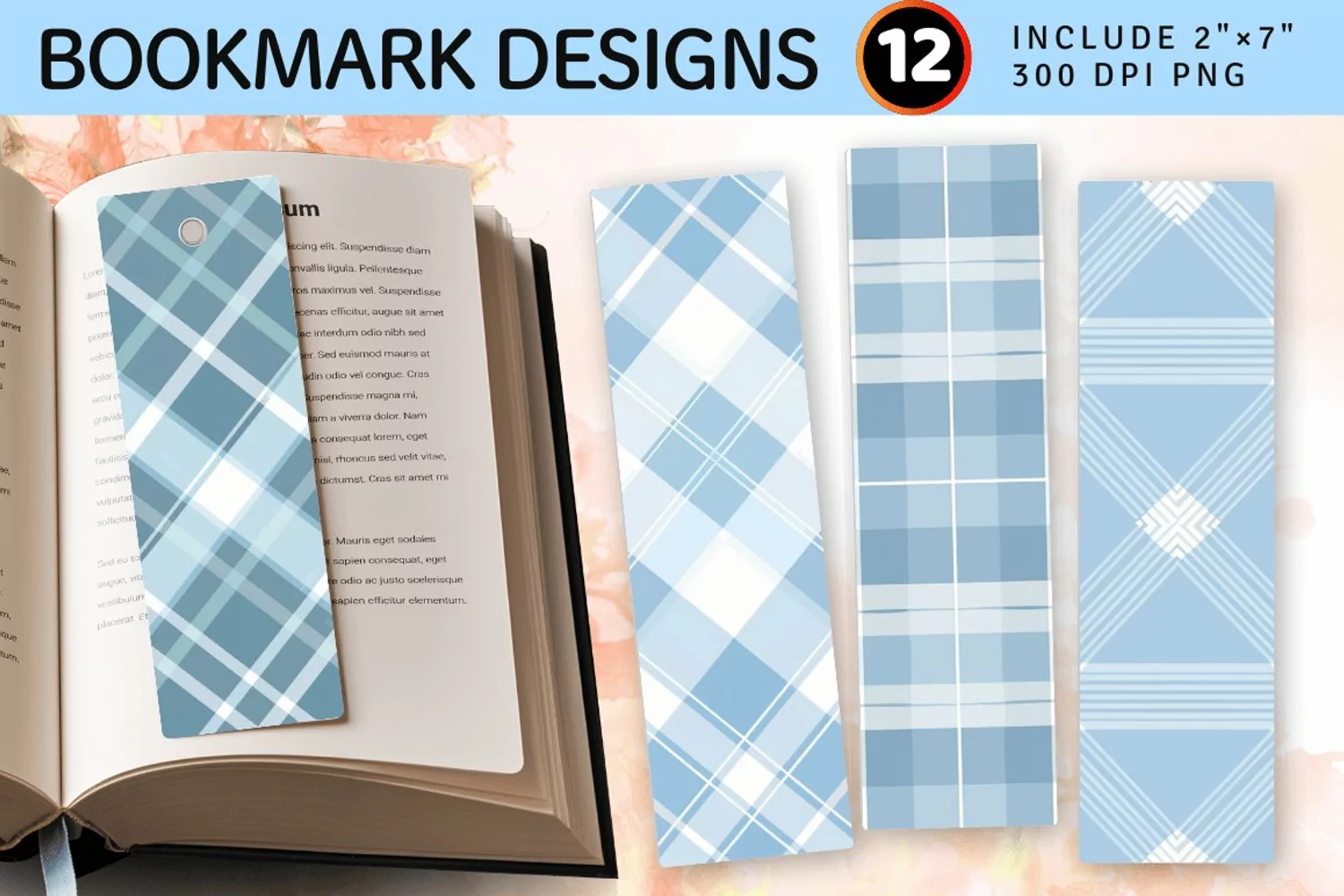 Pastel Blue Plaid PNG Bookmark Sublimation Designs