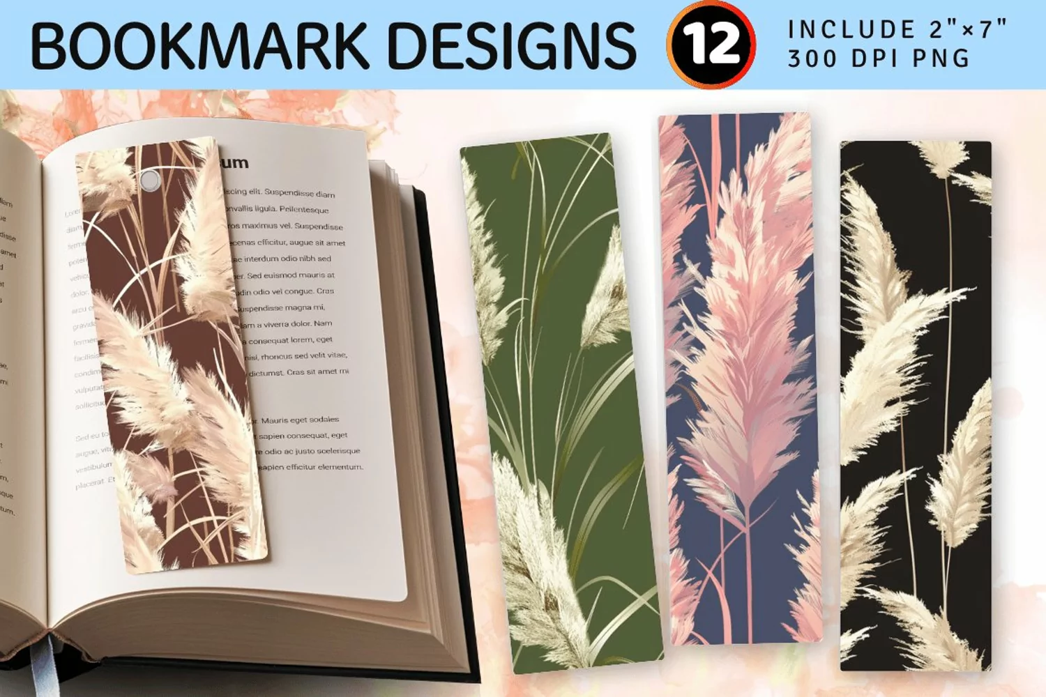 Pampas Grass PNG Bookmark Sublimation Designs