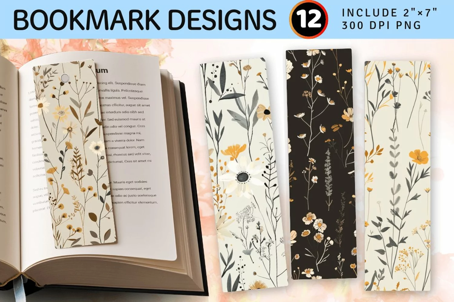 Neutral Wildflowers PNG Bookmark Sublimation Designs