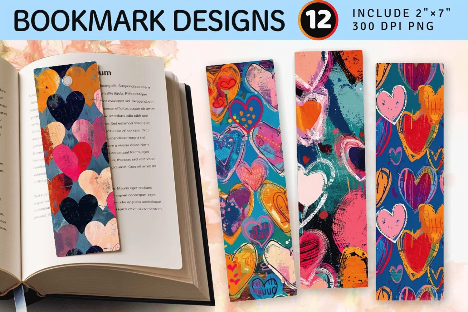 Mixed Media Funky Hearts PNG Bookmark Sublimation Designs