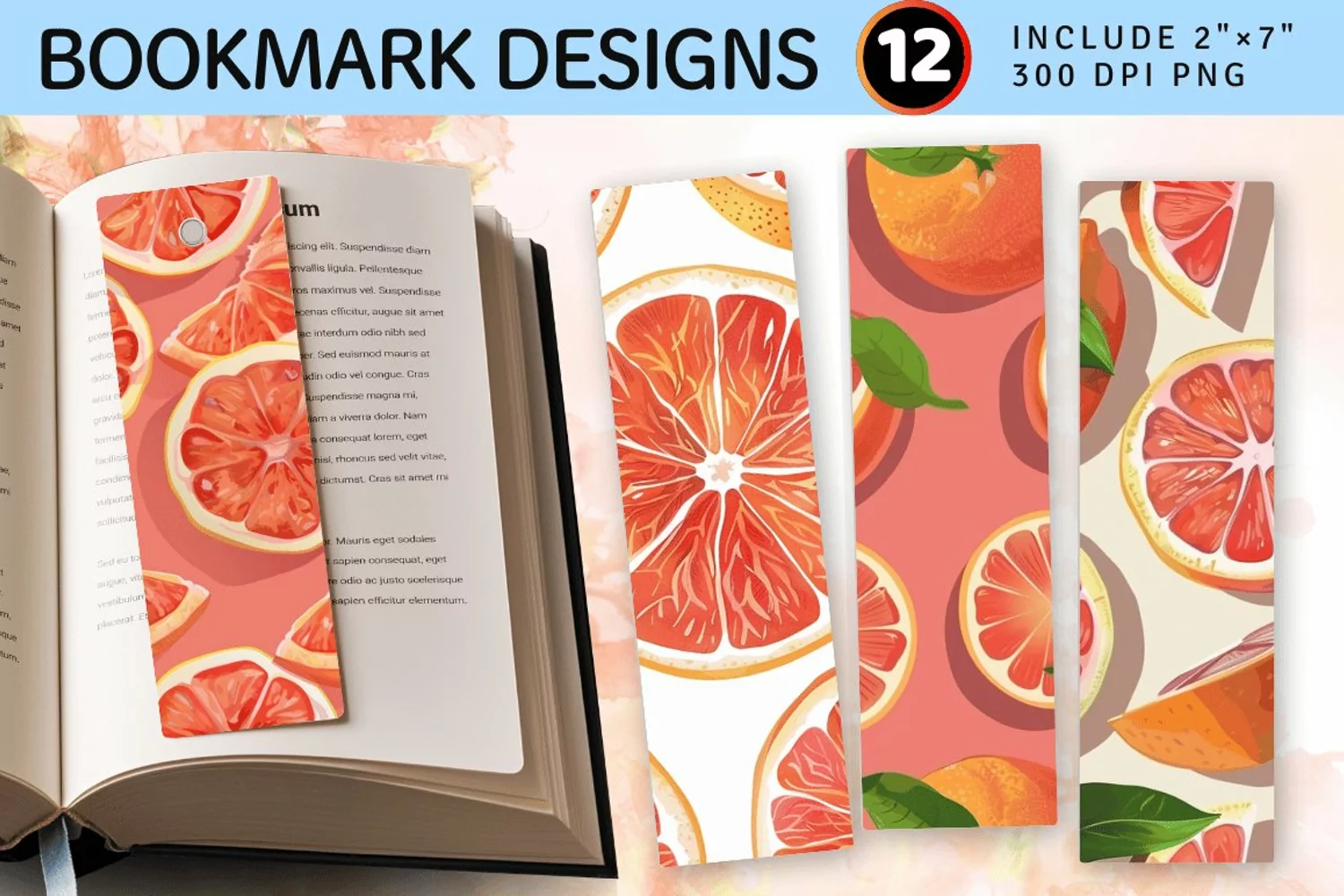 Grapefruit PNG Bookmark Sublimation Designs