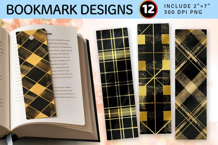 Gold & Black Plaid PNG Bookmark Sublimation Designs