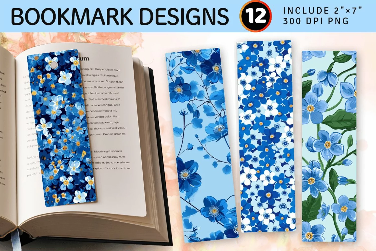 Forget Me Not Blue Floral PNG Bookmark Sublimation Designs