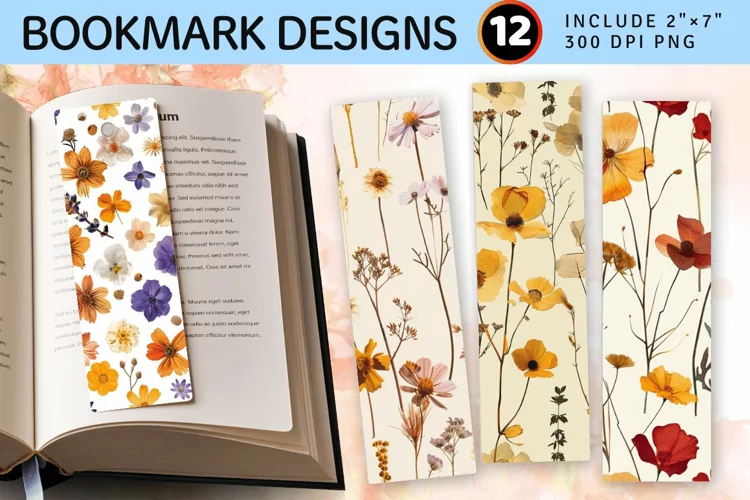 Dry Pressed Flowers PNG Bookmark Sublimation Designs