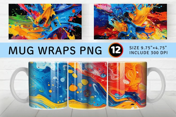 Colorful Paint Splashes Mug wrap Sublimation Designs