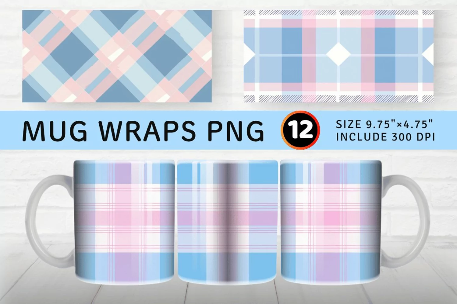 Baby Blue Pink Pastel Plaid Checkered Mug wrap Sublimation Designs
