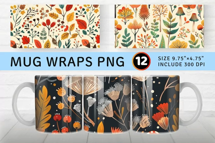 Mug Wrap Sublimation Design PNG. Digital Download Template. Design comes in Only straight wall.