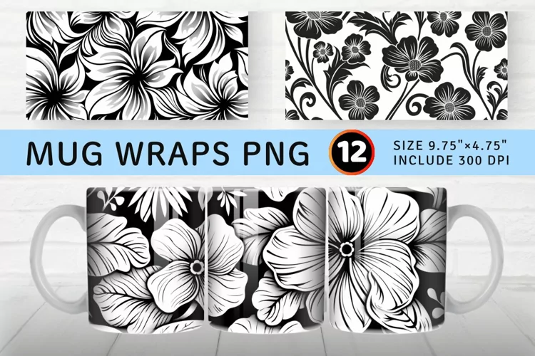 Mug Wrap Sublimation Design PNG. Digital Download Template. Design comes in Only straight wall.