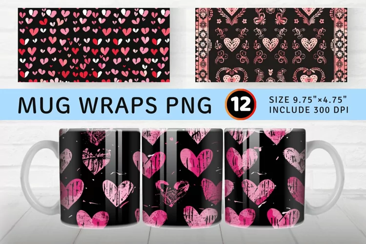 Black and Pink Valentines Day Mug wrap Sublimation Designs