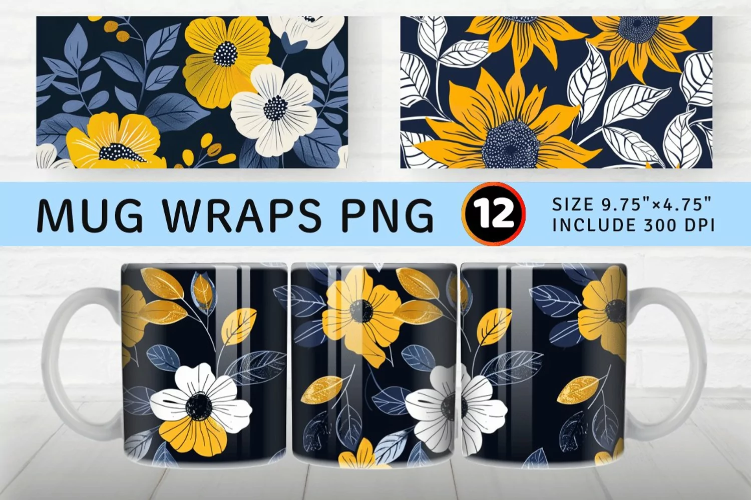 Navy Sunshines Floral Mug wrap Sublimation Designs