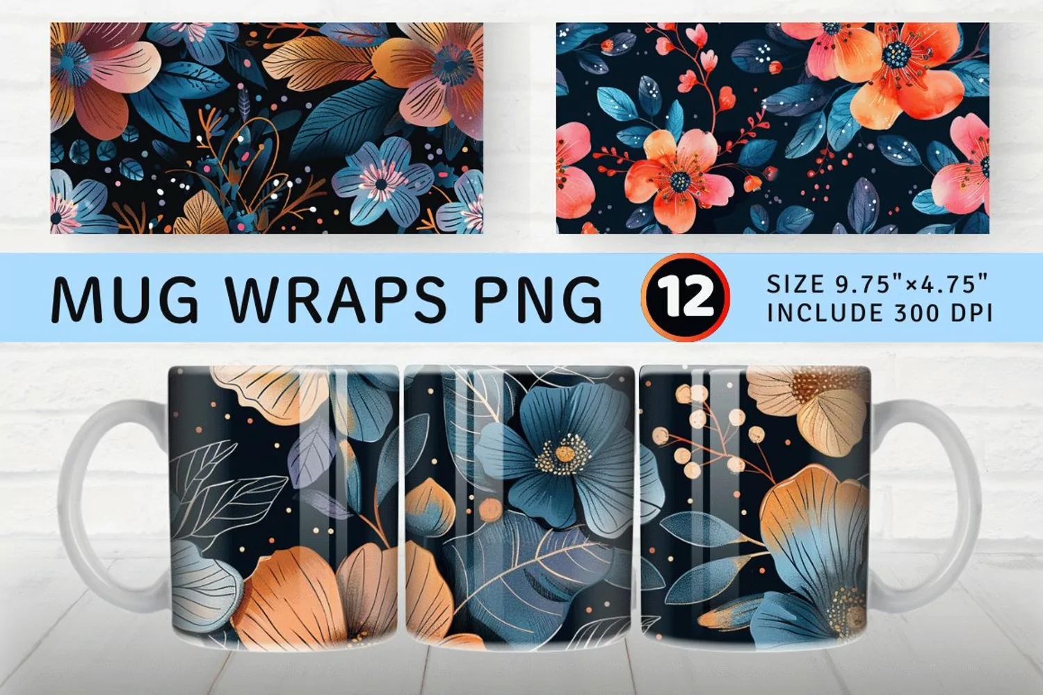Mug Wrap Sublimation Design PNG. Digital Download Template. Design comes in Only straight wall.