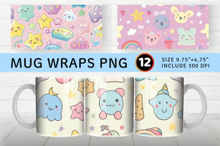 Pastel Kawaii Mug wrap Sublimation Designs