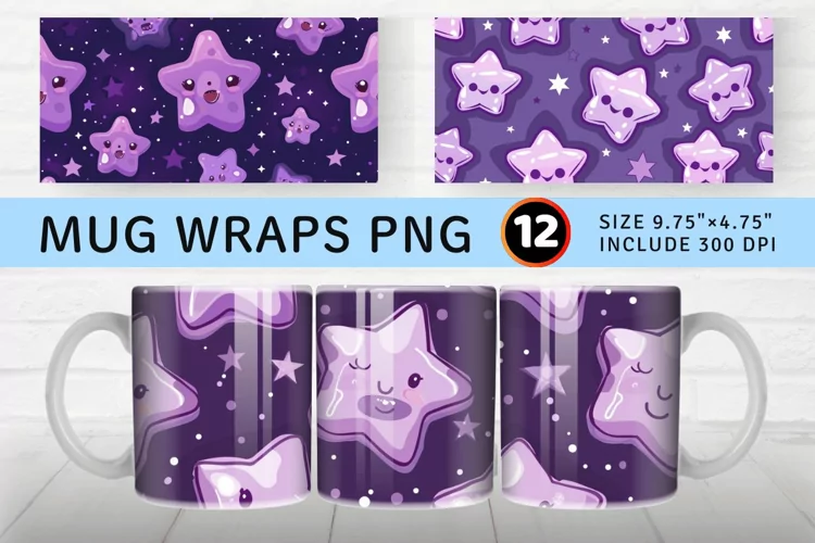 Purple Kawaii Stars Mug wrap Sublimation Designs