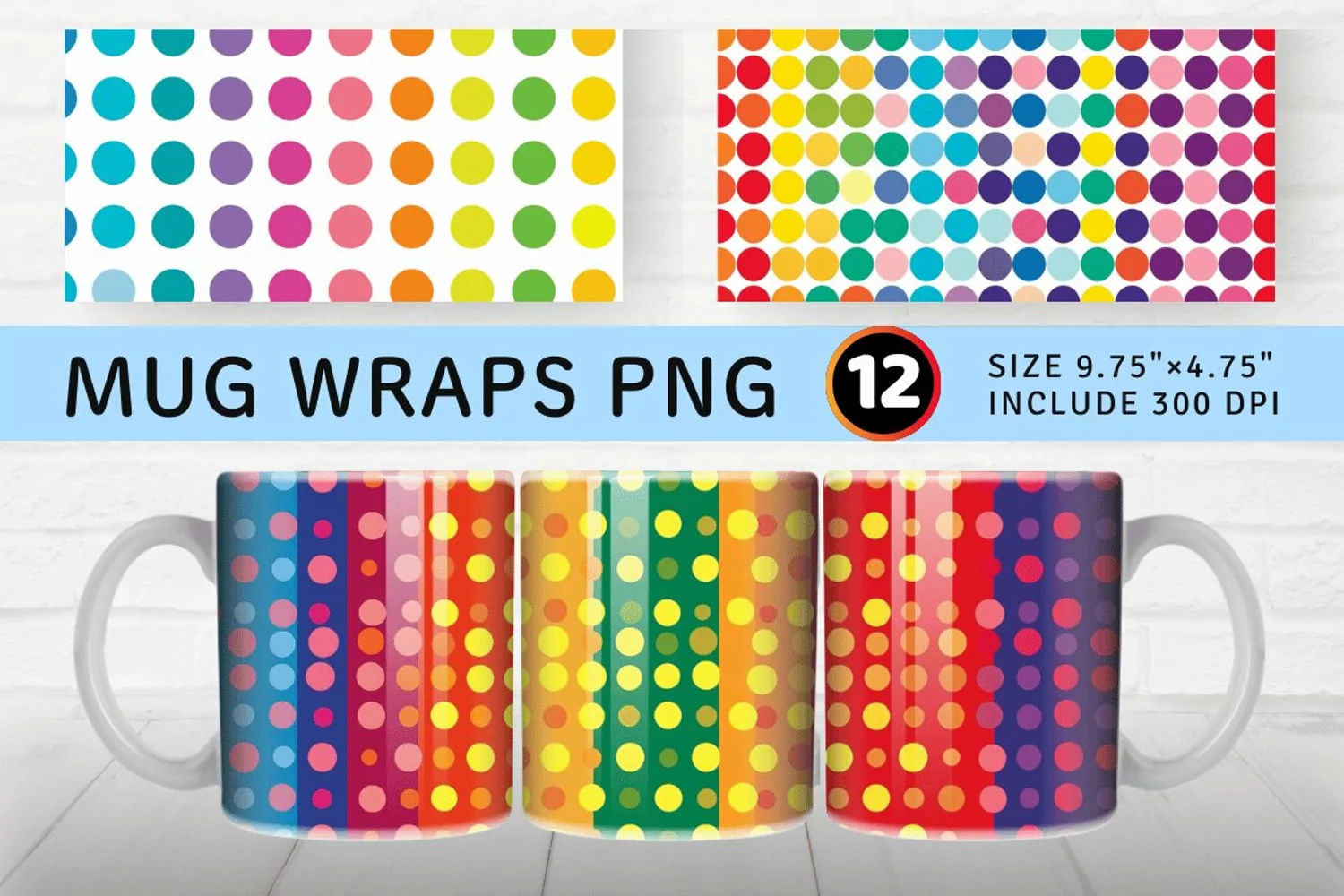 Rainbow Polka Dots Mug wrap Sublimation Designs