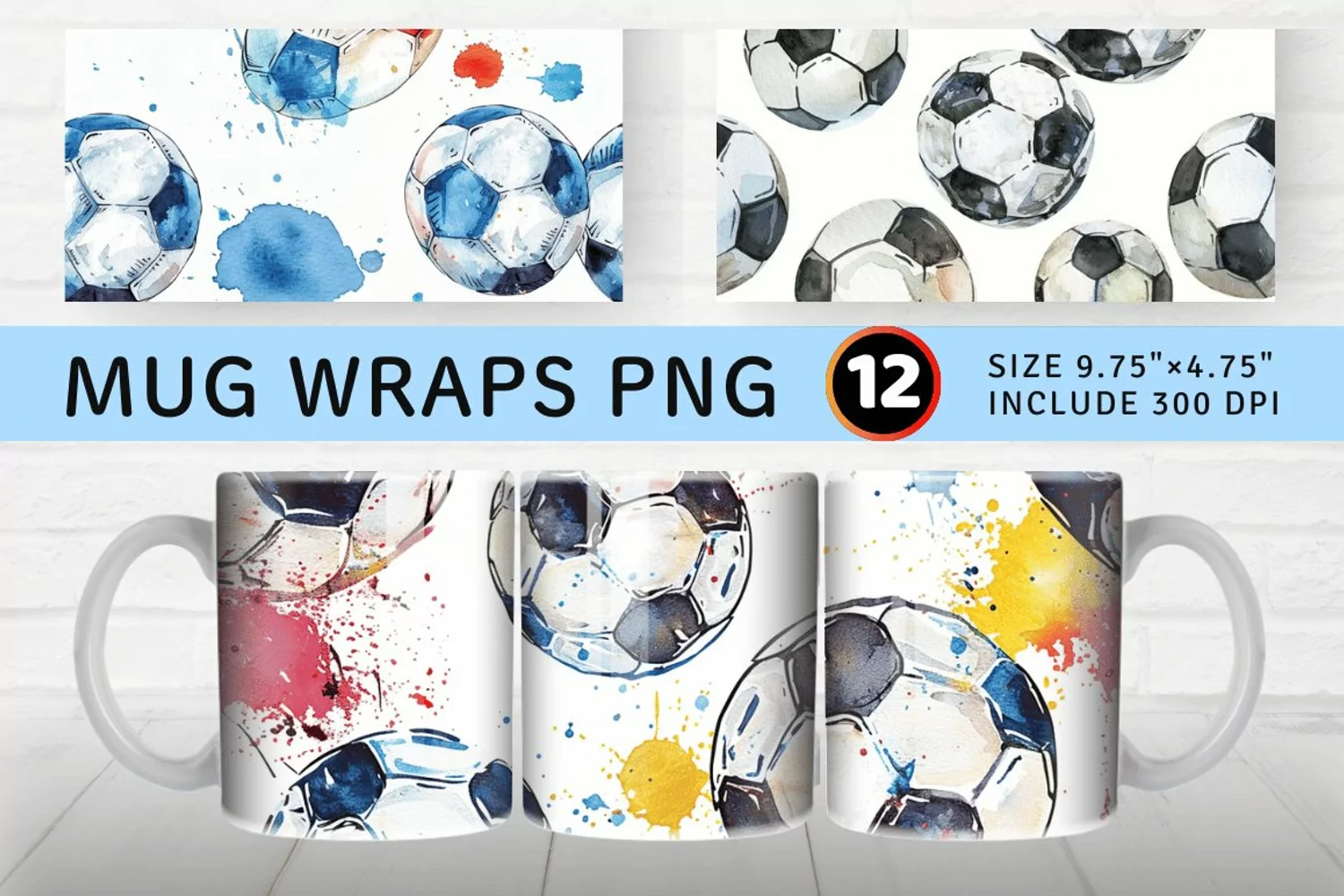 Watercolor Soccer Mug wrap Sublimation Designs