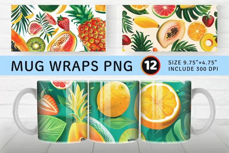 Tropical Summer Fruits Mug wrap Sublimation Designs