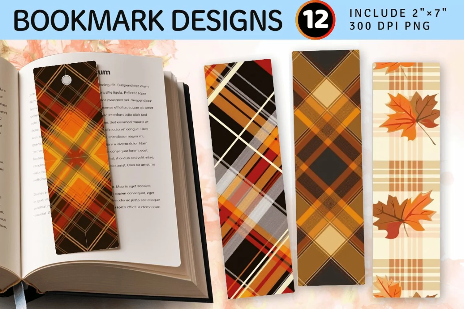 Autumn Plaid PNG Bookmark Sublimation Designs