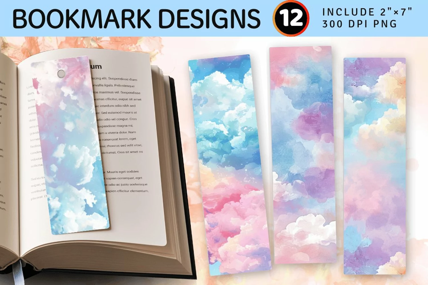 Watercolor Pastel Clouds PNG Bookmark Sublimation Designs