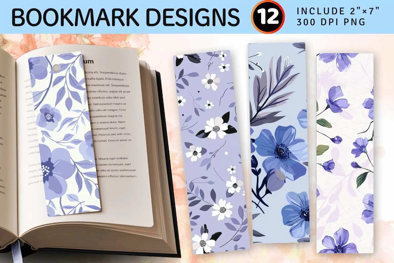 Cute Periwinkle Floral PNG Bookmark Sublimation Designs