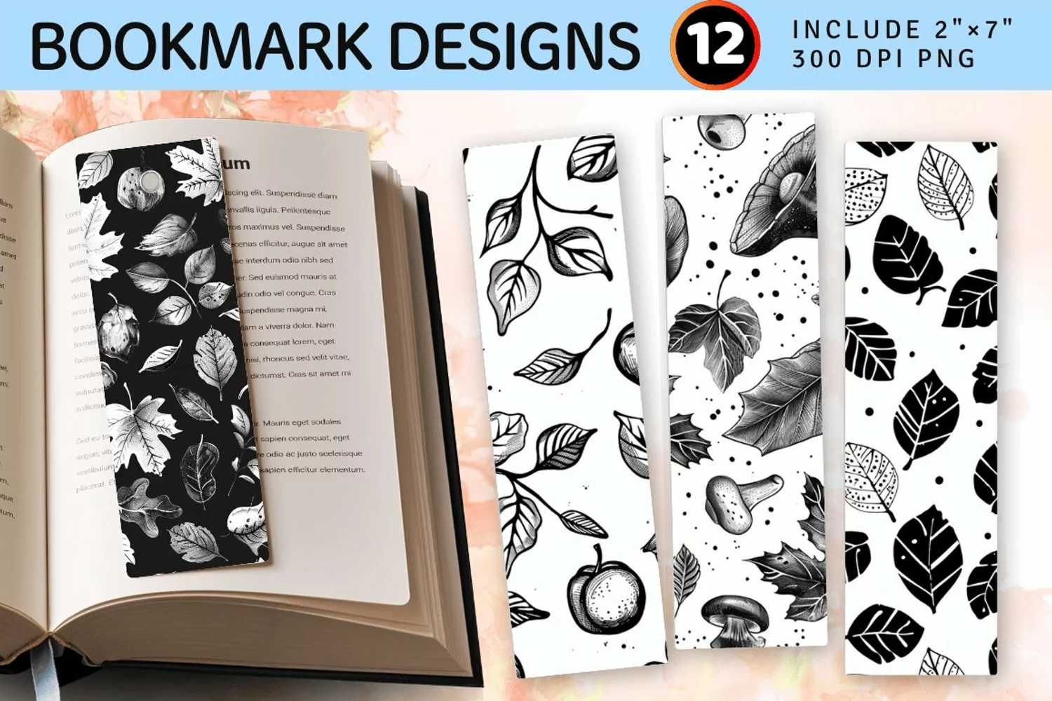 Black & White Autumn PNG Bookmark Sublimation Designs