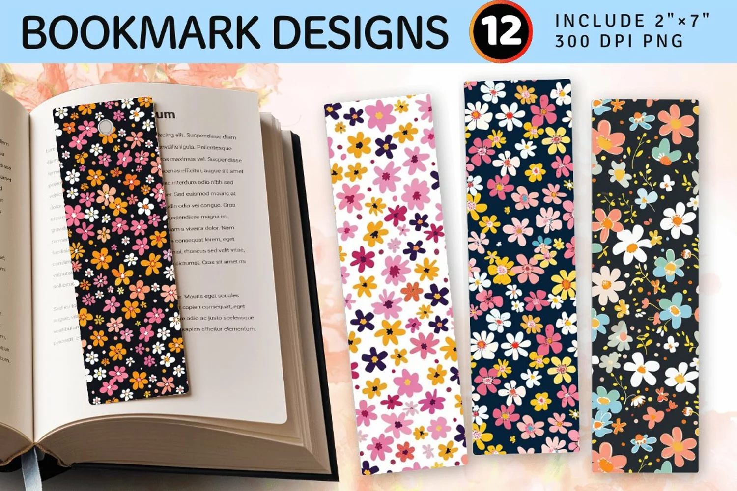 Cute Tiny Ditsy Flowers PNG Bookmark Sublimation Designs