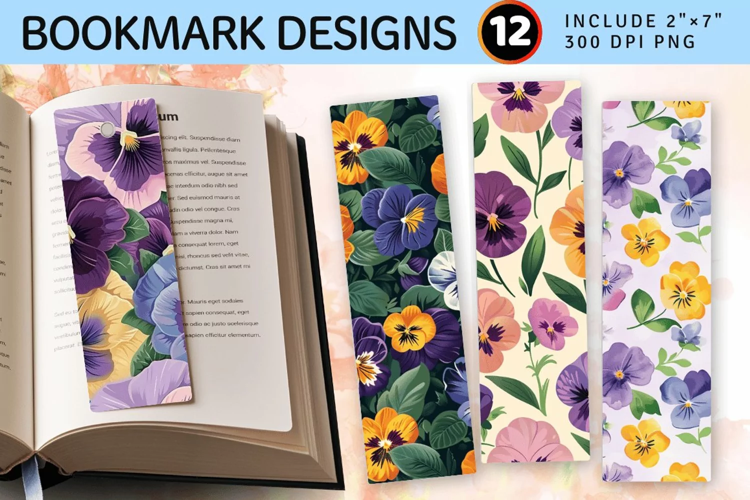 Cute Pansy Floral Garden PNG Bookmark Sublimation Designs
