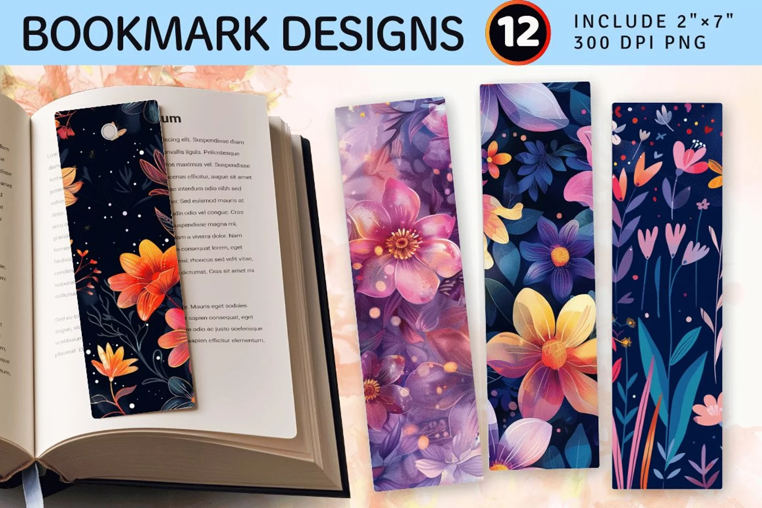 Magical Dreamy Flowers PNG Bookmark Sublimation Designs