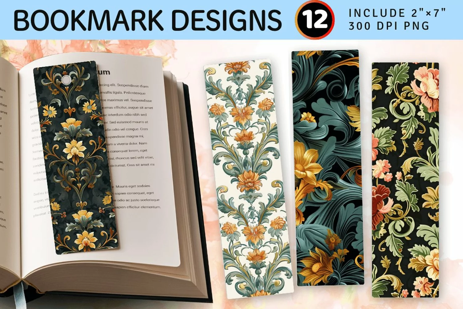 Baroque Flowers PNG Bookmark Sublimation Designs