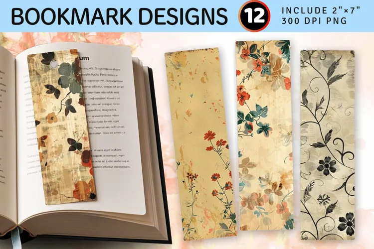Vintage Grungy Floral PNG Bookmark Sublimation Designs