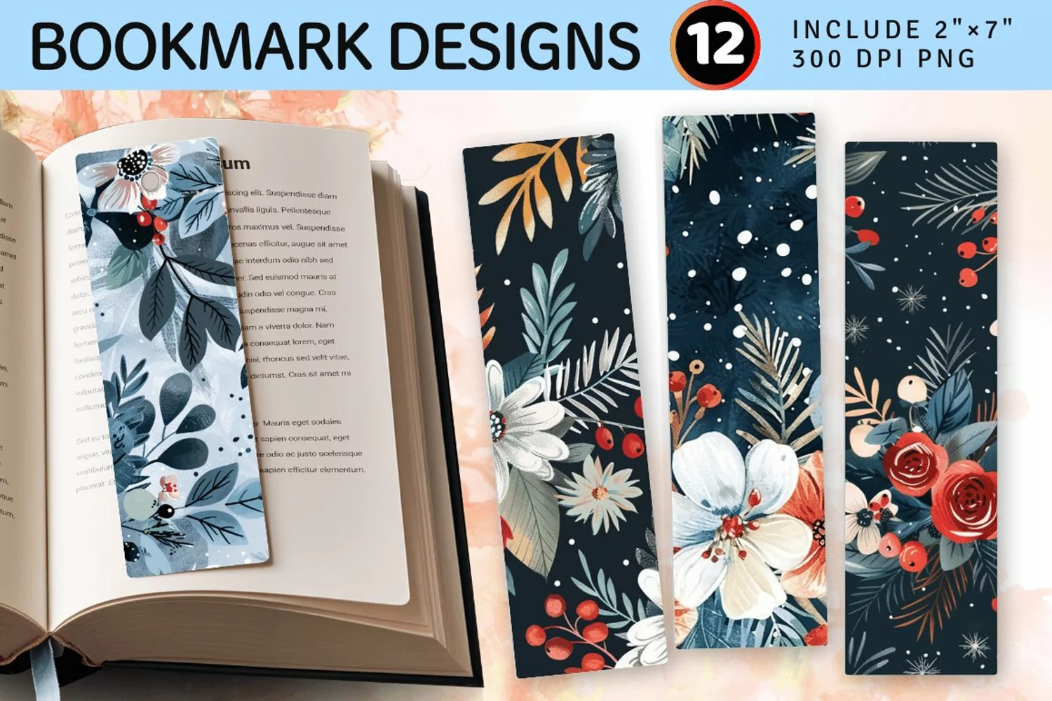 Winter Floral Bouquet PNG Bookmark Sublimation Designs