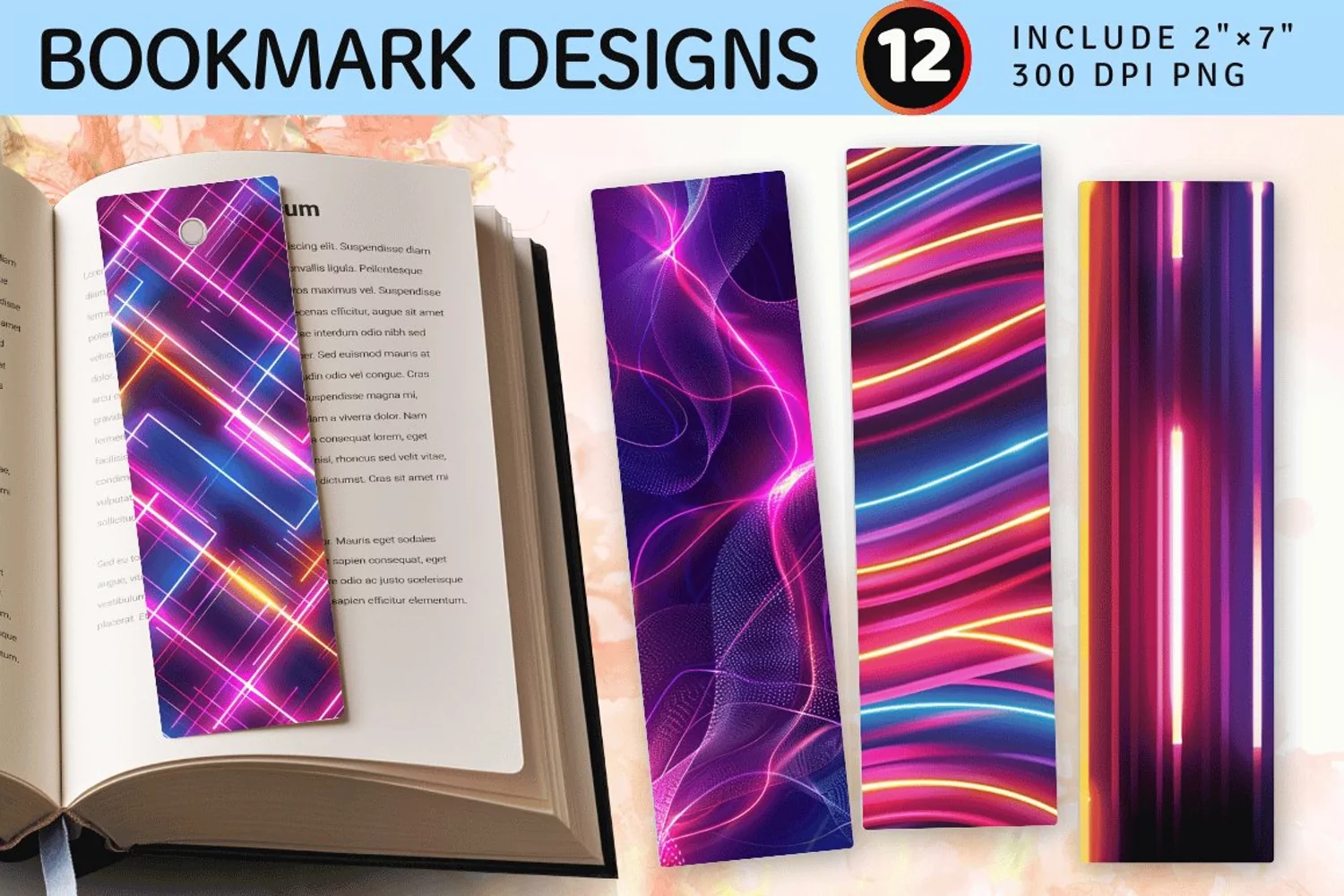Abstract Neon Lights PNG Bookmark Sublimation Designs