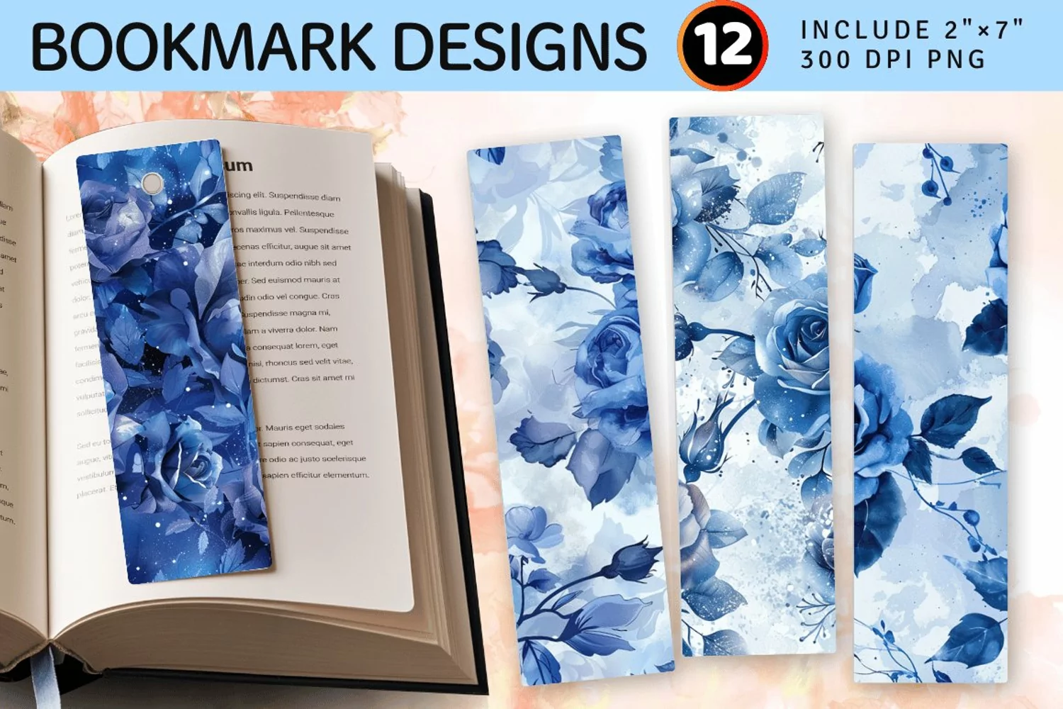 Winter Blue Roses PNG Bookmark Sublimation Designs
