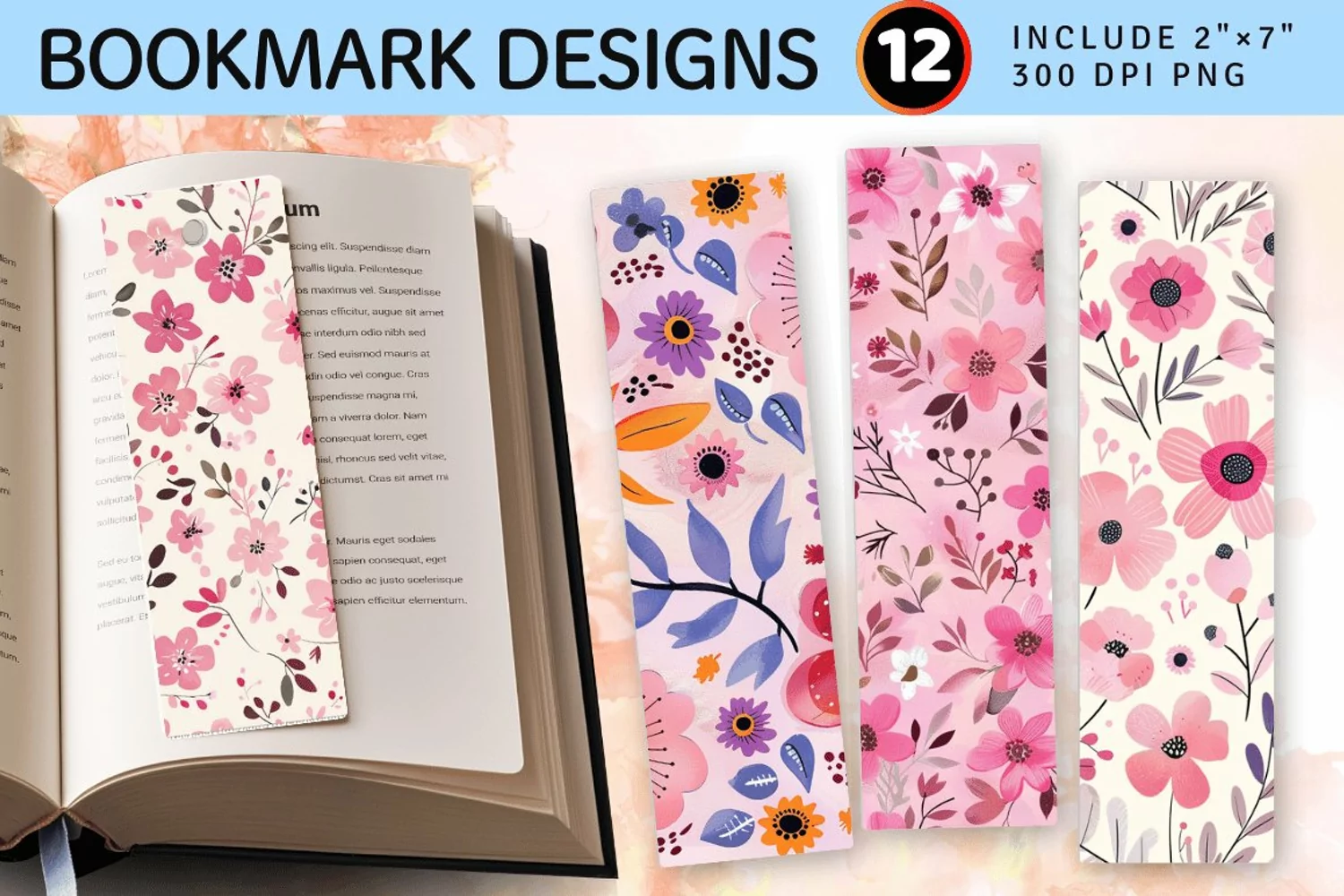 Tiny Pink Boho Floral PNG Bookmark Sublimation Designs