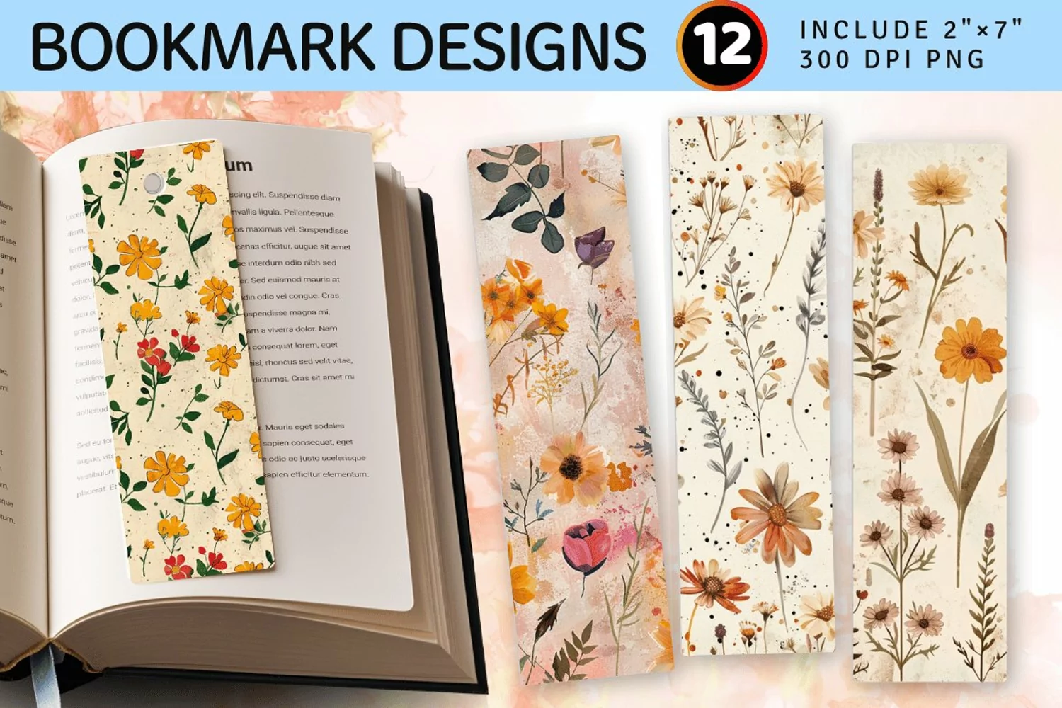 Boho Pressed Flowers PNG Bookmark Sublimation Designs