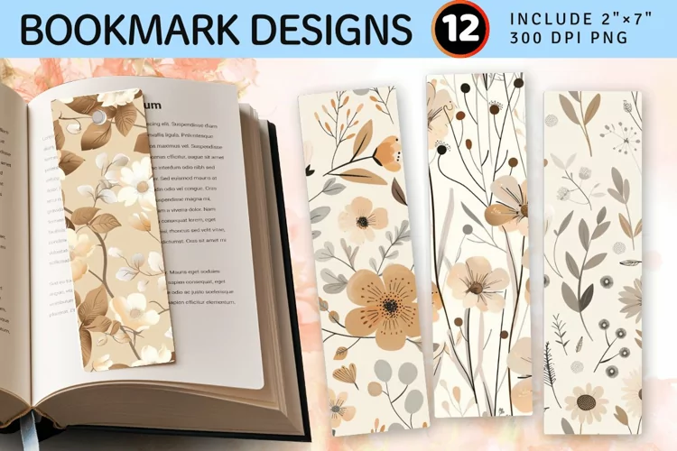 Neutral Beige Flowers PNG Bookmark Sublimation Designs